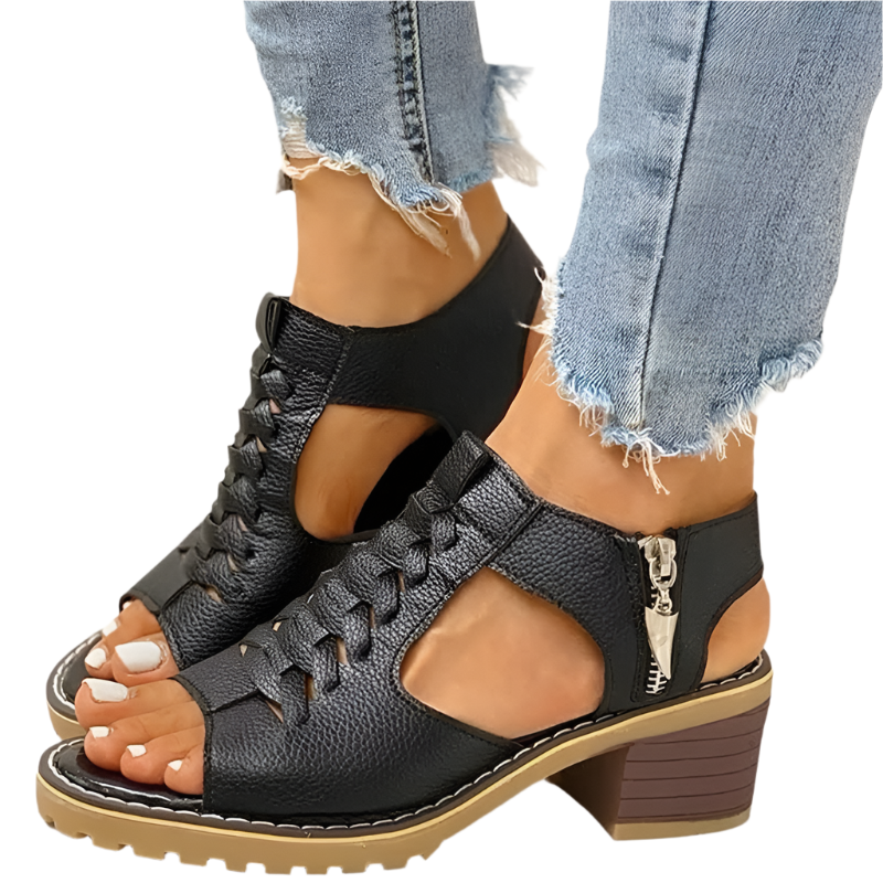 Perfekt pasform: Den justerbare lynlås gør det nemt at tage sandalerne af og på og sikrer en behagelig pasform.