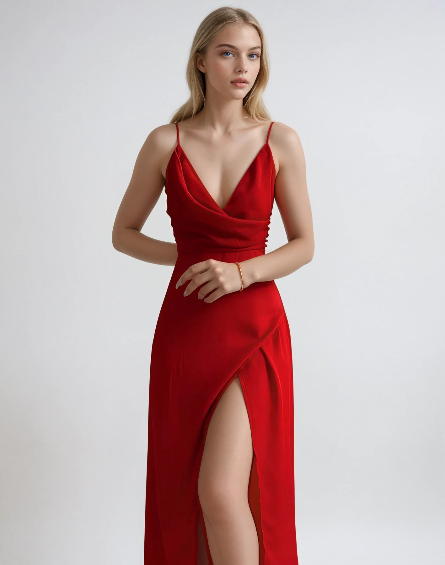 Gør et uforglemmeligt indtryk med denne smukke satinkjole, designet til at glide over kroppen med en blød, luksuriøs følelse. Perfekt til bryllupper, gallafester eller aftenens store begivenhed – denne kjole kombinerer glamour med komfort. Den stilrene slids tilføjer en moderne kant og giver dig frihed til at bevæge dig med lethed og selvtillid.