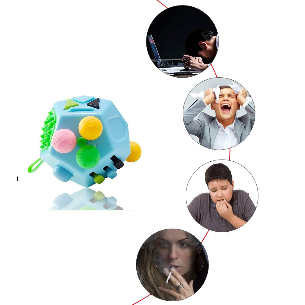 12-Sidet dekompressionslegetøj – Stressafhjælpende sensorisk terning til børn & voksne